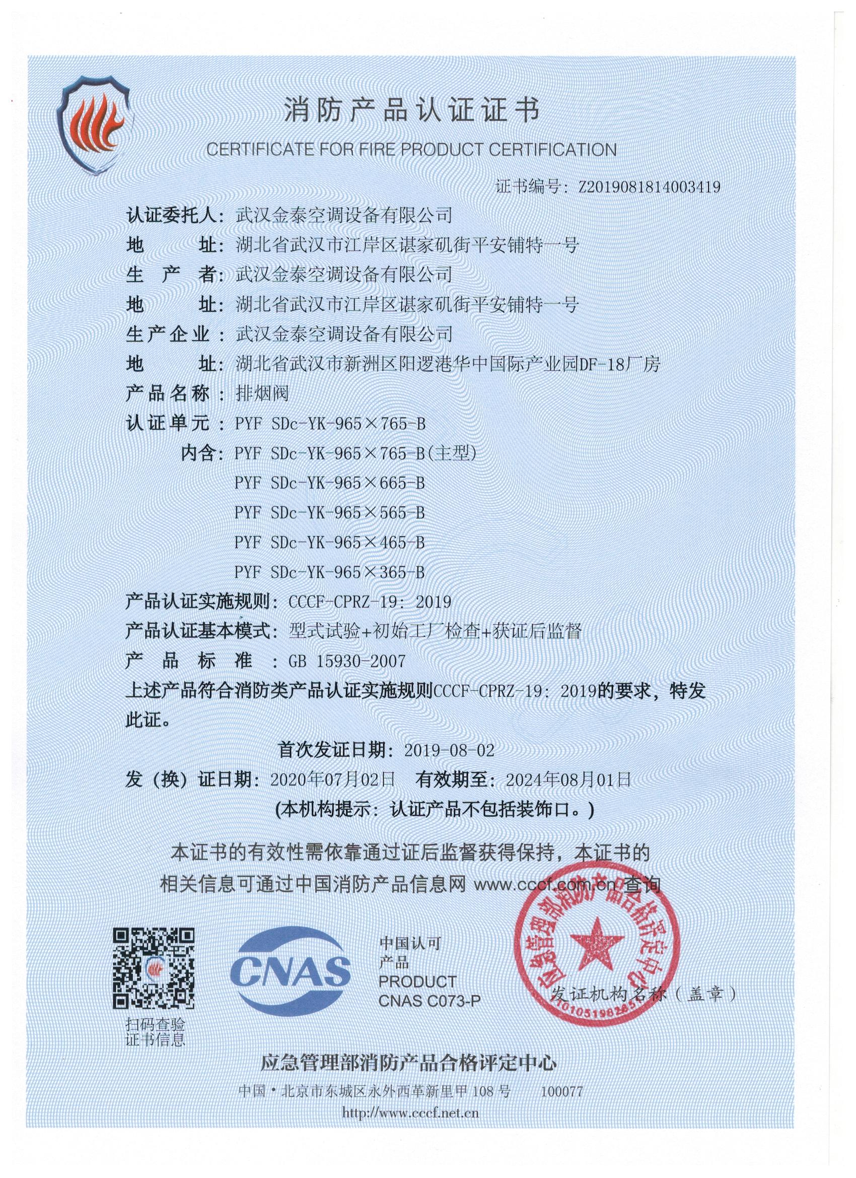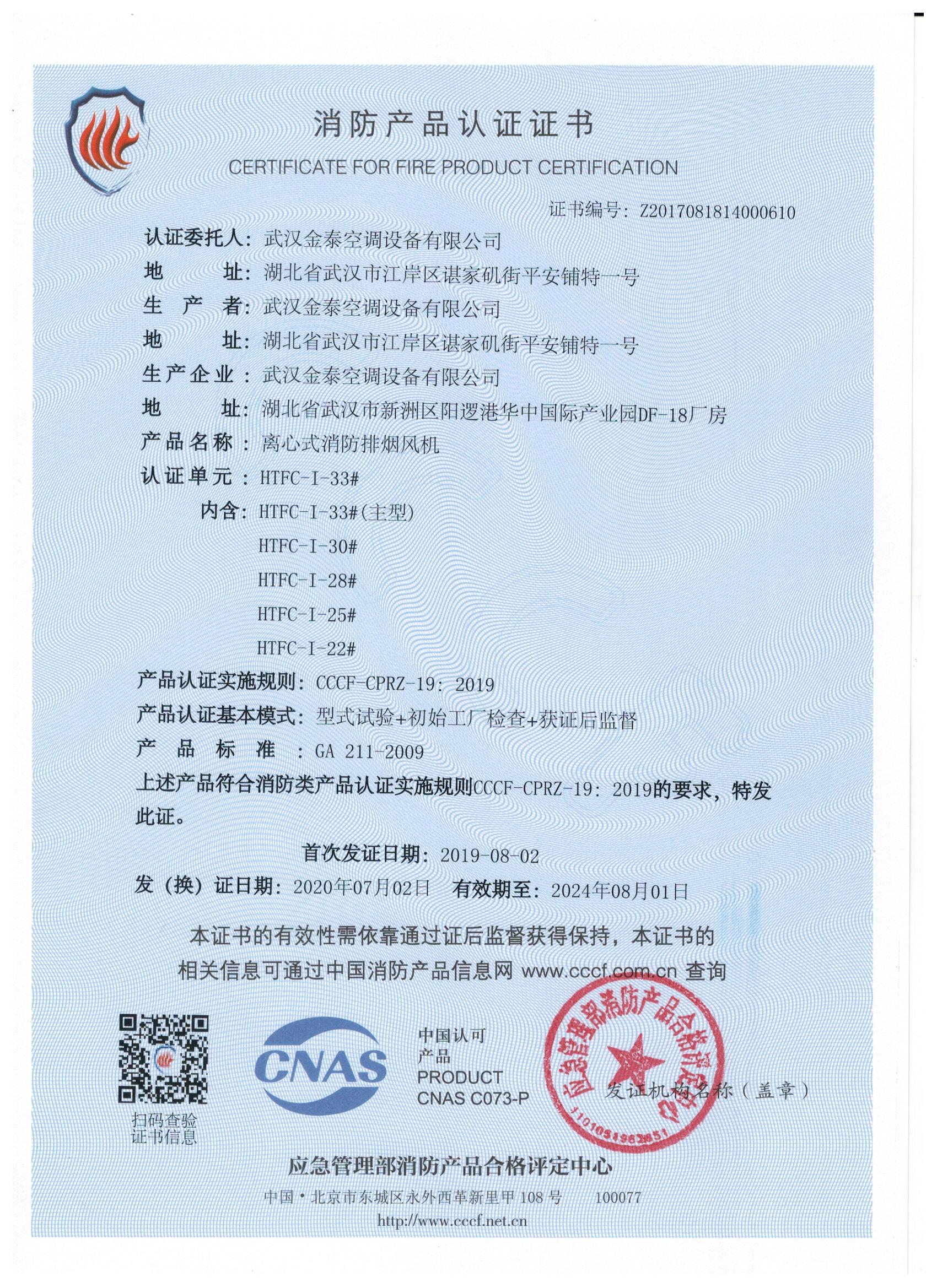 武漢金泰空調設備有限公司 是國內長期專注于民用風機、工業(yè)風機領域的標桿企業(yè):專業(yè)生產(chǎn)消防排煙風機系列、排煙防火閥系列、一般通風機系列(軸流式、離心式、屋頂式、壁式、隧道式、射流式)、風口、風管等消防及通風設備。產(chǎn)品經(jīng)公安部消防產(chǎn)品合格評定中心評定符合消防產(chǎn)品CCC標準;經(jīng)中國合格評定國家認可委員會認證的檢驗所檢驗合格;經(jīng)國家防火建材質量監(jiān)督檢驗中心(四川中心)火燒實驗,耐火性能達標。